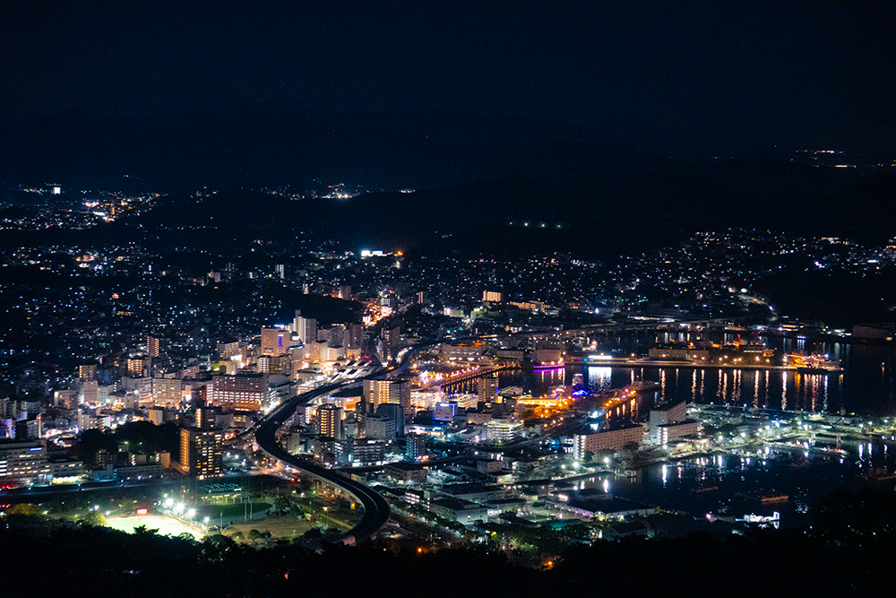 昼間に辿った被爆の記憶と復興の歩みが、眼下に広がる夜景と静かに重なり合う。