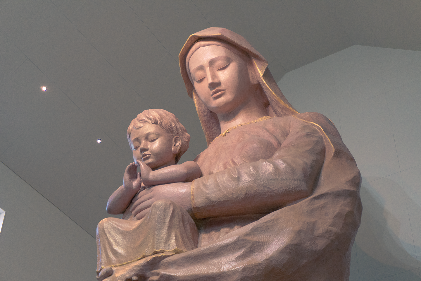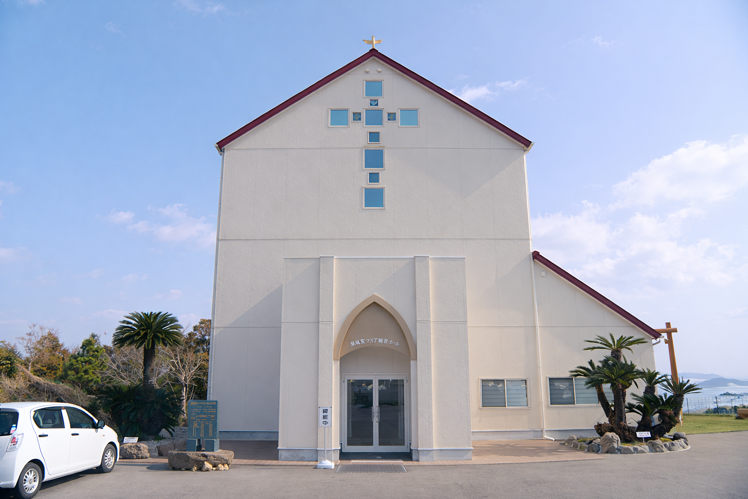 原城跡のほど近くに佇む「原城聖マリア観音ホール」に到着です。ここは、島原・天草一揆という激動の時代、厳しい弾圧の中で潜伏キリシタンたちが密かに守り抜いた「マリア観音像」をはじめ、信仰の歴史を伝える貴重な資料を展示する施設です。