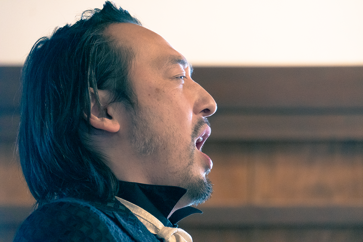 昼食後のくつろぎの空間が、瞬く間に親密な「劇場」へと変わります。古民家特有の太い梁や土壁に包まれた響きは、ホールとは一味違う柔らかな温もりに満ちています。