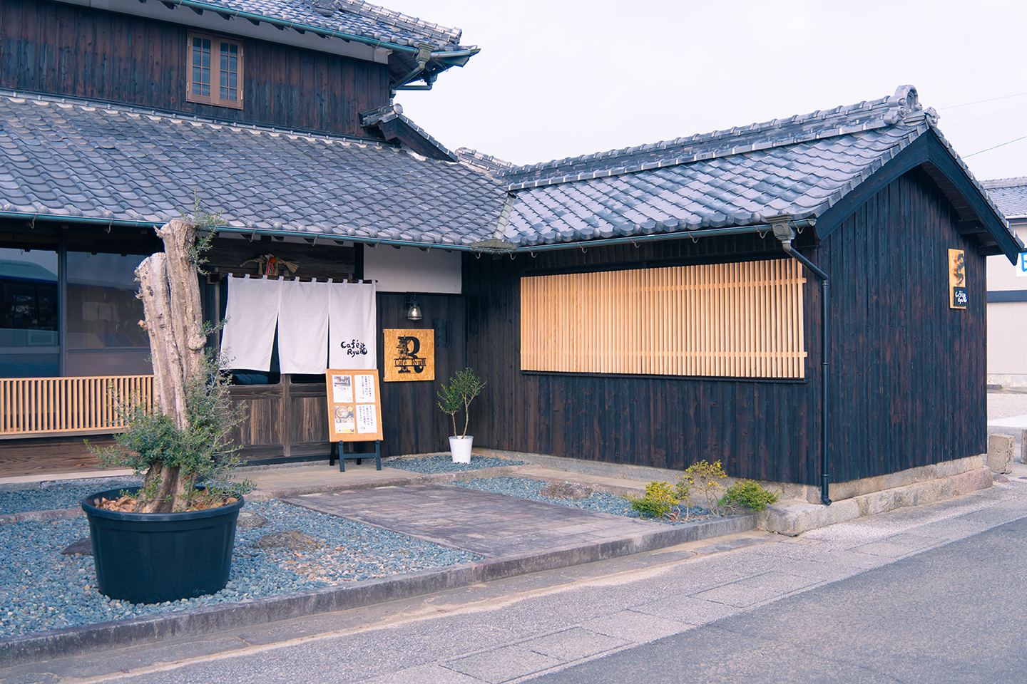 原城跡のほど近く、時を重ねた趣ある佇まいの「古民家カフェ Ryu龍」へ。一歩足を踏み入れれば、立派な木の梁と木の香りに包まれた、心安らぐ空間が広がります。